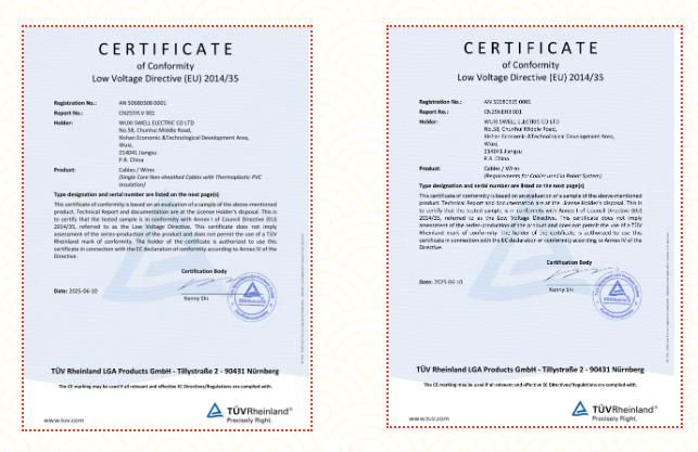 近日,無錫勝維電氣有限公司再傳捷報!多款單芯線和多芯護套線,憑借其卓越的性能、可靠的質量和嚴格的生產標準,成功通過德國萊茵TÜV認證的嚴格審核,并獲得認證證書。