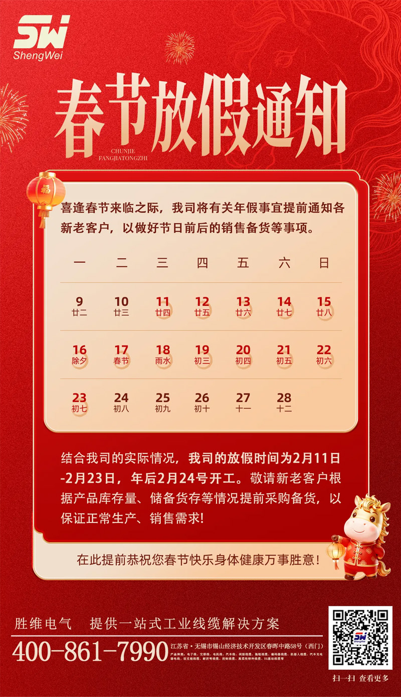 無錫勝維電氣2026年春節放假通知